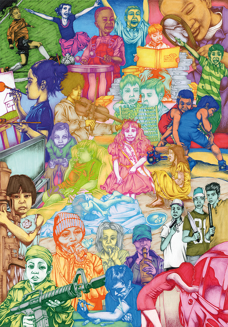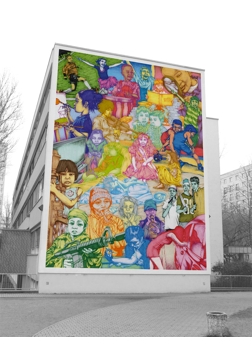 This work addresses the possible life perspectives of children and youth in the global society. The planned mural will create the necessary attention and allow one to consider all of the different perspectives. It portraits ideas of happiness and success, however does not disregard the aspects of pain and doubt.