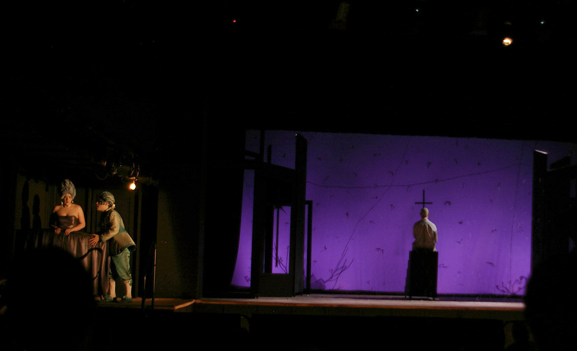 Don Giovanni is characterized by the multitude of settings. In order to be just to this multitude, the design of the stage had to be especially precise and cleverly planed to save space despite the spacial limitations of the theater at Hanns Eisler Berlin.